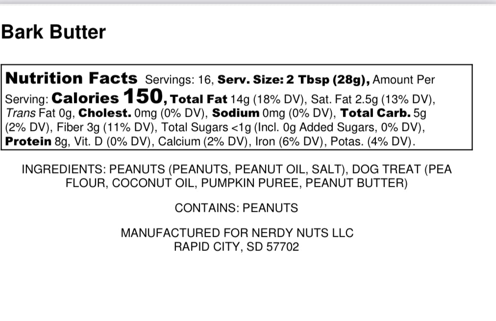 Bark Butter is 100% all natural, grain free peanut butter that is made in small batches to ensure a fresh and flavorful treat. Itās topped with a pumpkin and peanut butter treat that your dog is sure to go wild about.