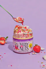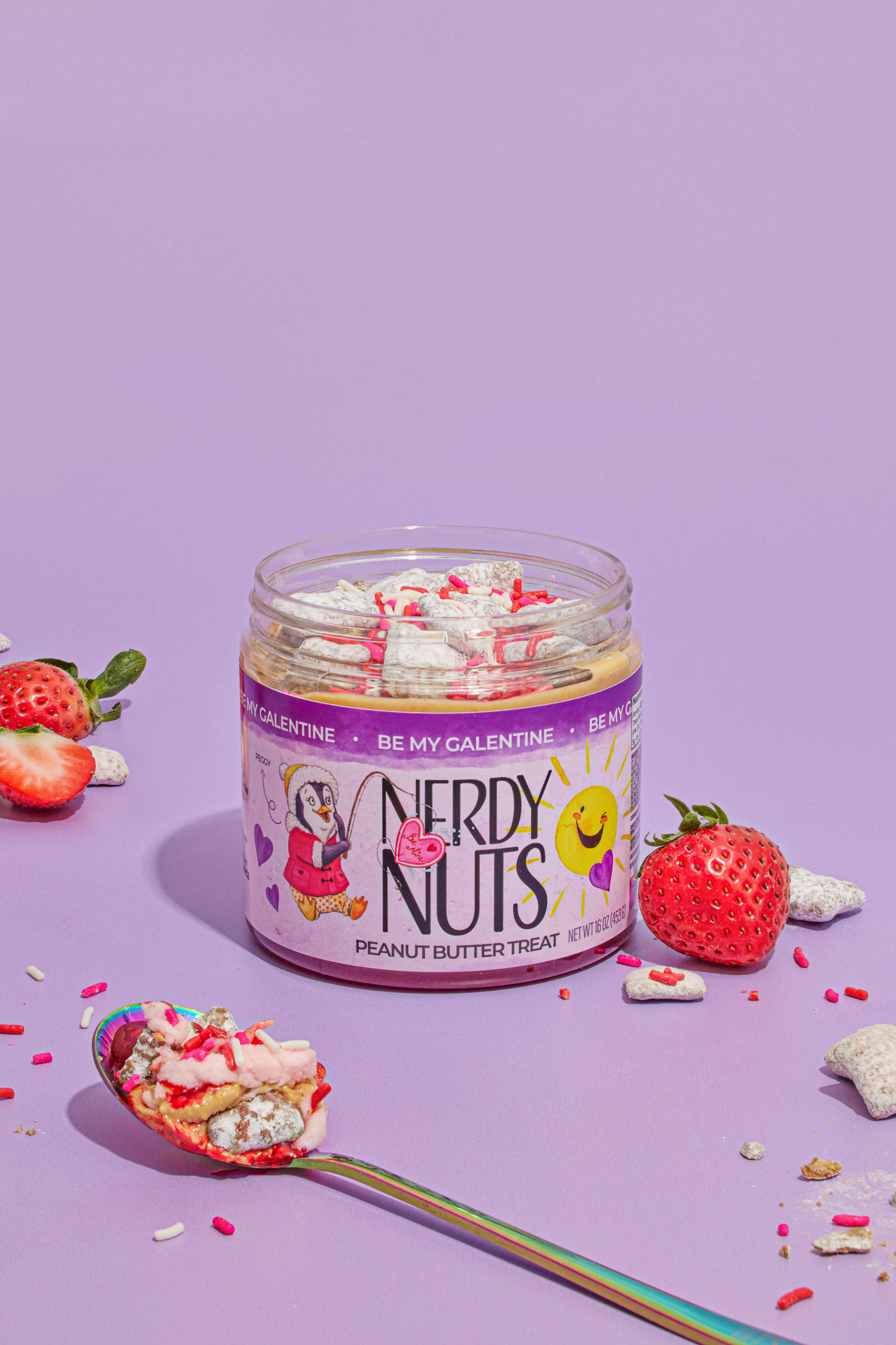 Be My Galentine starts with white chocolate peanut butter layered on strawberry sauce. We top it with strawberry frosting, puppy chow chex pieces, and top it with Valentine's Day sprinkles. Grab your gals, guys, and ALL the pals because love is in the air!