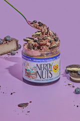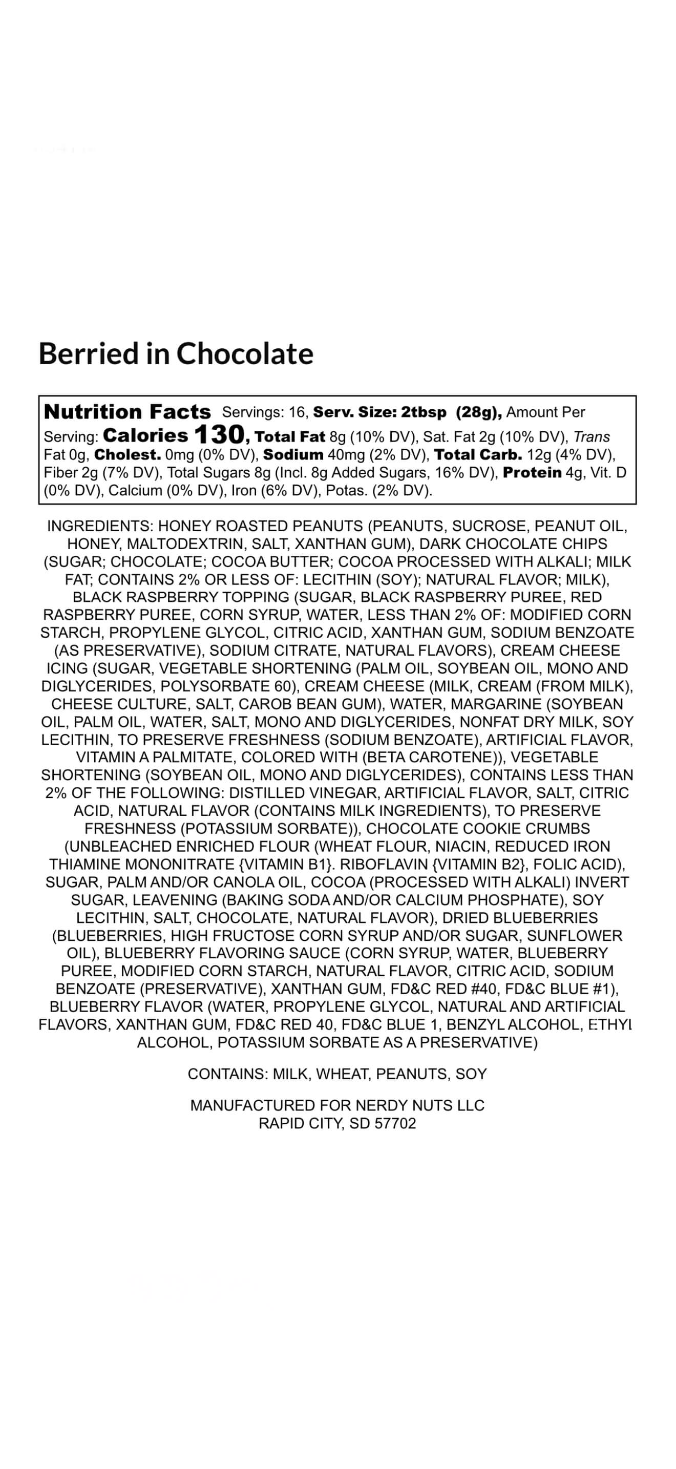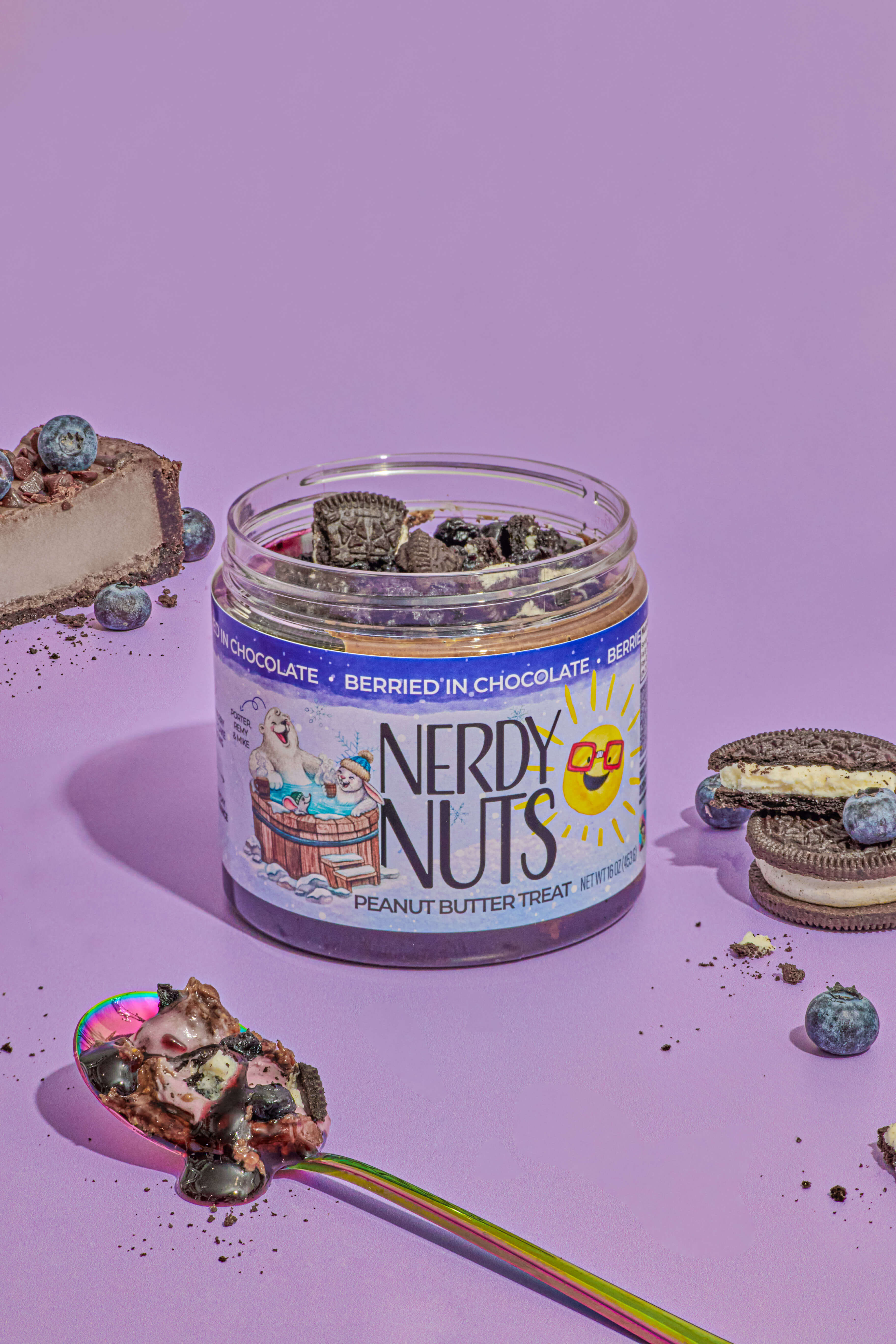 BERRY us 6 feet under with this berry cheesecake treat! Sweet dark chocolate peanut butter is layered on black raspberry sauce, topped with blueberry cheesecake frosting, chocolate cookies & cream, & dried blueberries! This is one we're taking to the grave.