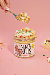 Cupcake ice cream peanut butter is layered on waffle cone bits, topped with cupcake bites, cupcake frosting, cake batter stars, and rainbow sprinkles! We all scream for peanut butter ice cream!
