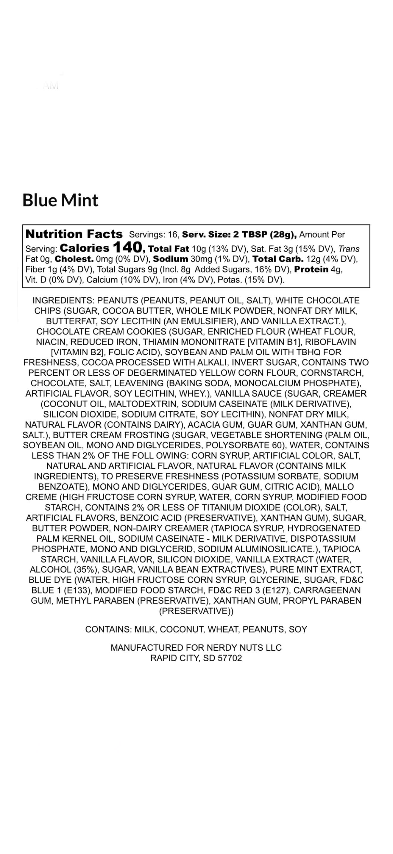 Inspired by the USU original, our cookies & cream ice cream peanut butter is layered on vanilla ice cream sauce, topped with blue mint mallow frosting, white chocolate chips, & chocolate cookies & cream!