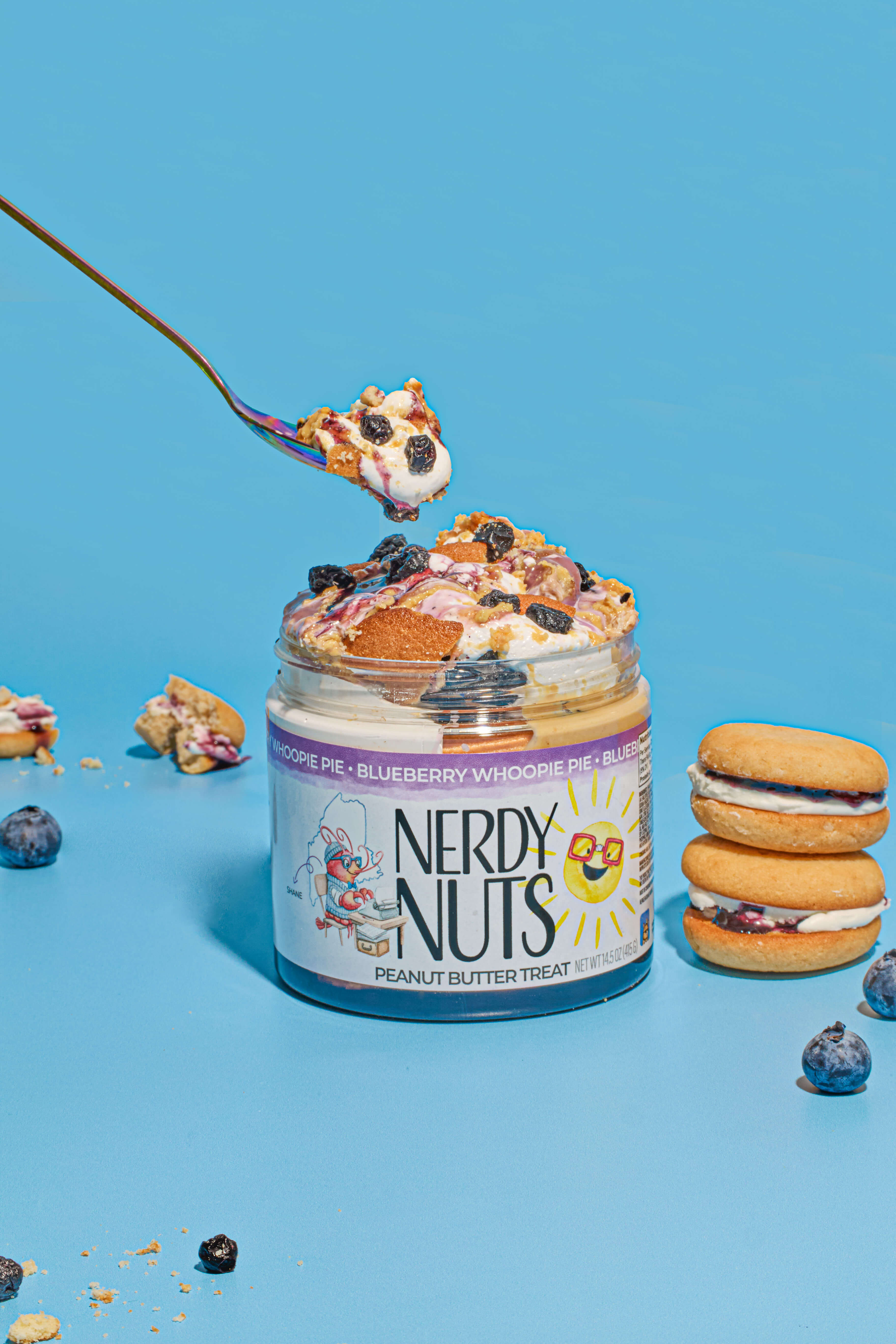 Maine's iconic blueberries & whoopie pies "jammed" into a peanut butter masterpiece!