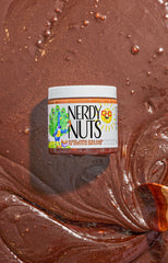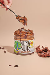 Rich dark chocolate Nerdy Nuts peanut butter, chunks of chocolate chips and swirls of Ghirardelli Chocolate sauce make this jar a chocolate lovers dream.