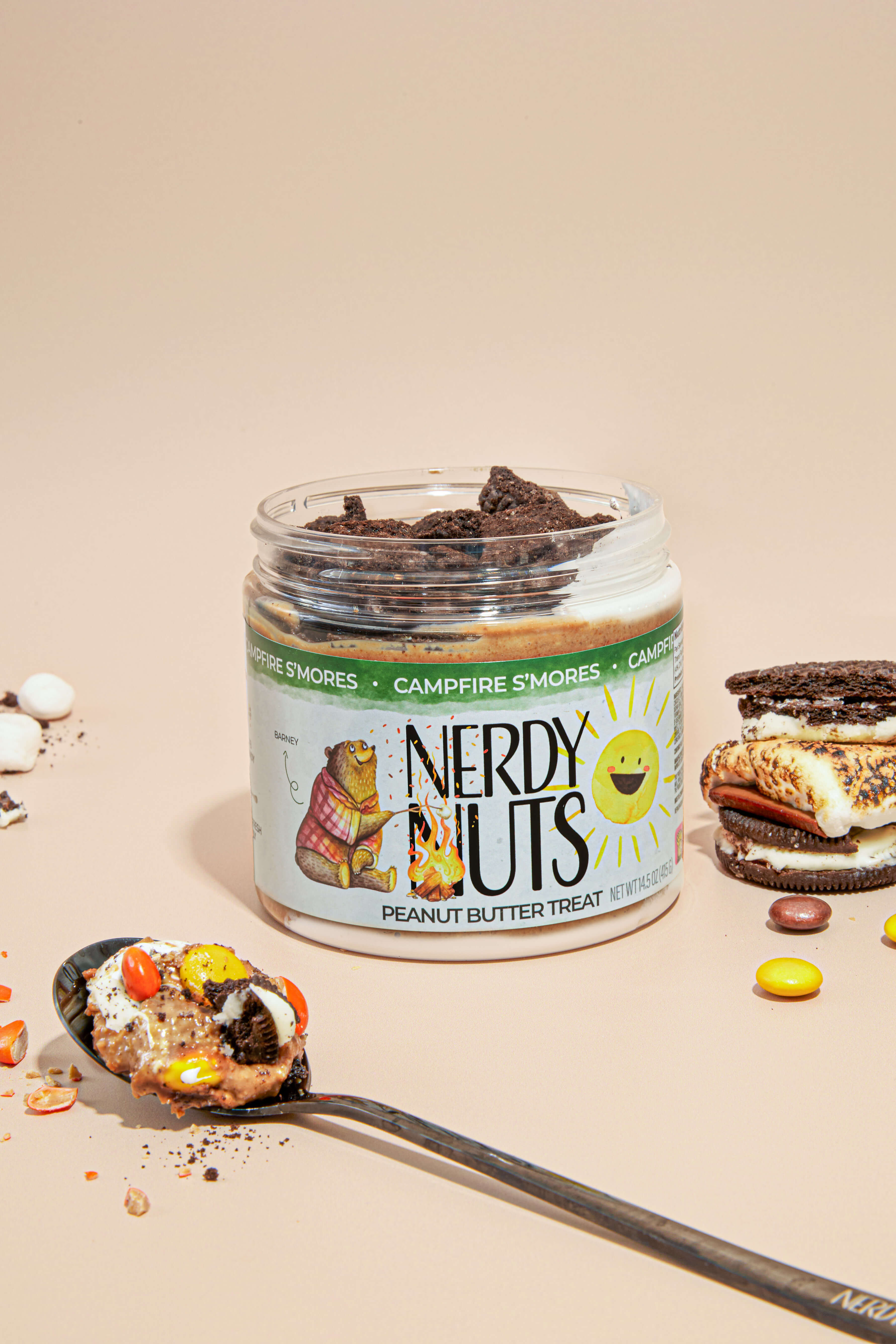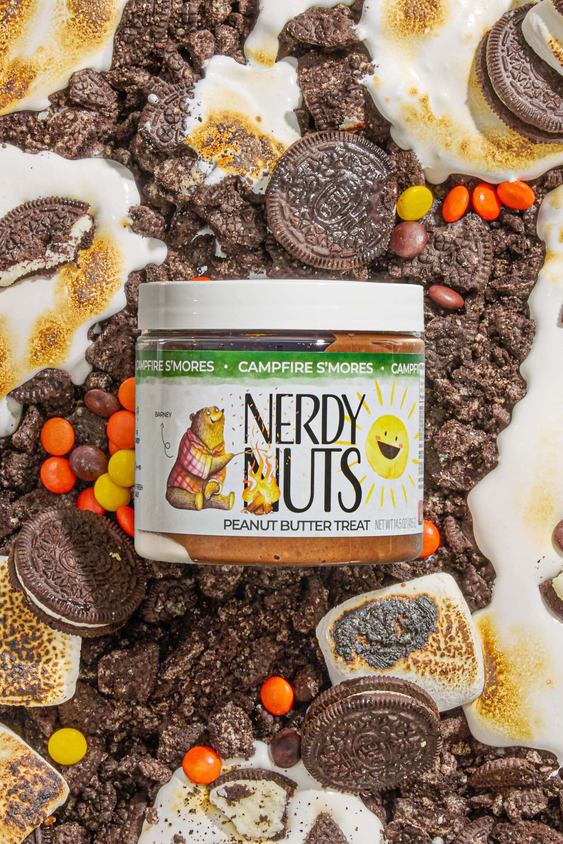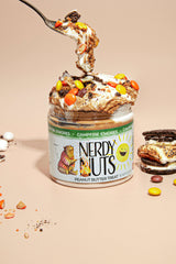 This summer treat starts with sweet milk chocolate peanut butter base swirled with marshmallow fluff. We then load each jar up with chocolate cookies & cream and PB candy. You'll definitely be wanting S'MORE of this flavor!