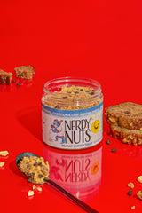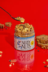 Brown sugar banana peanut butter is layered on caramel banana bread flavored sauce, topped with cookie dough, chocolate chips, banana chips, and cinnamon streusel!