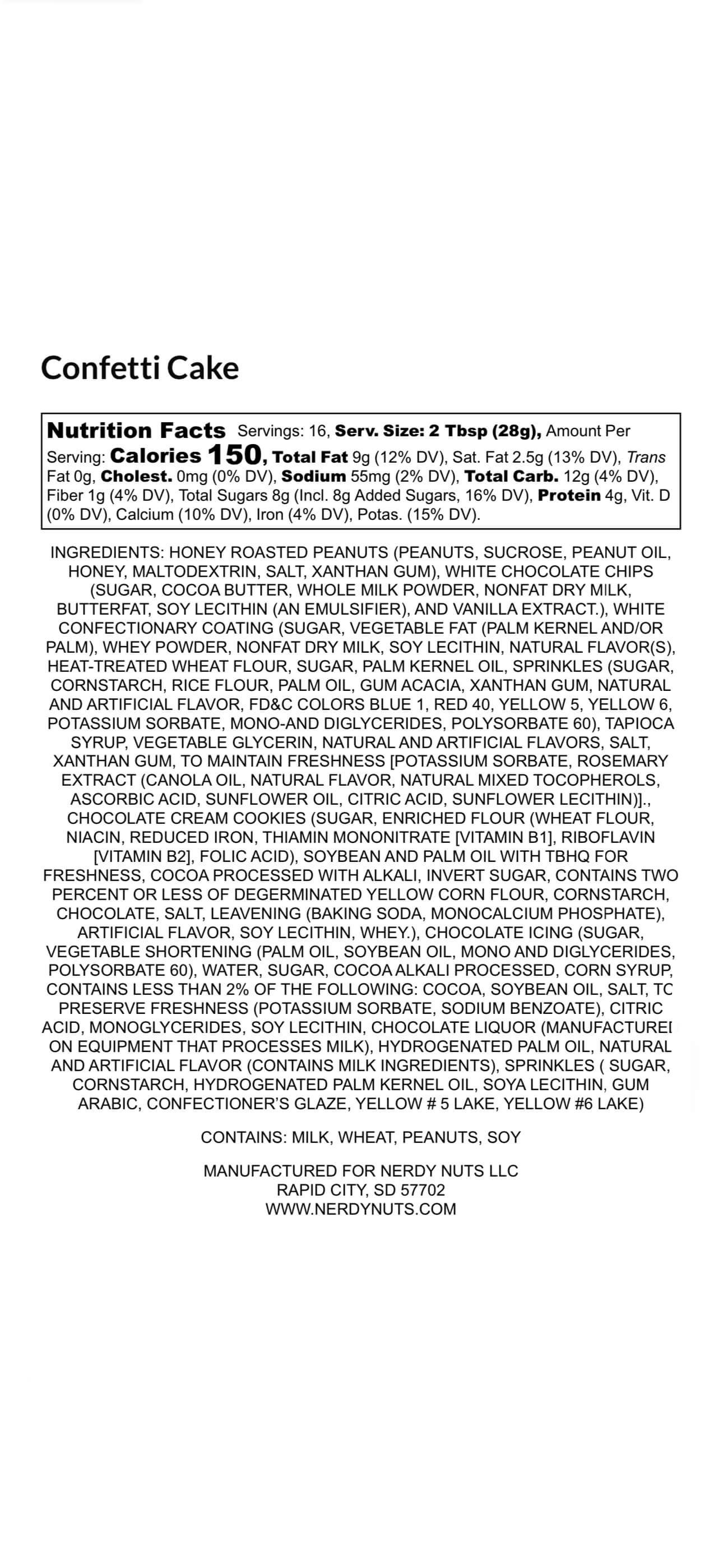 Confetti Cake starts with sweet honey white chocolate peanut butter with OREOS and cake bites blended into the base. We wanted to celebrate BIG, so we topped it off with chocolate frosting, sprinkles, and more cupcake bites!