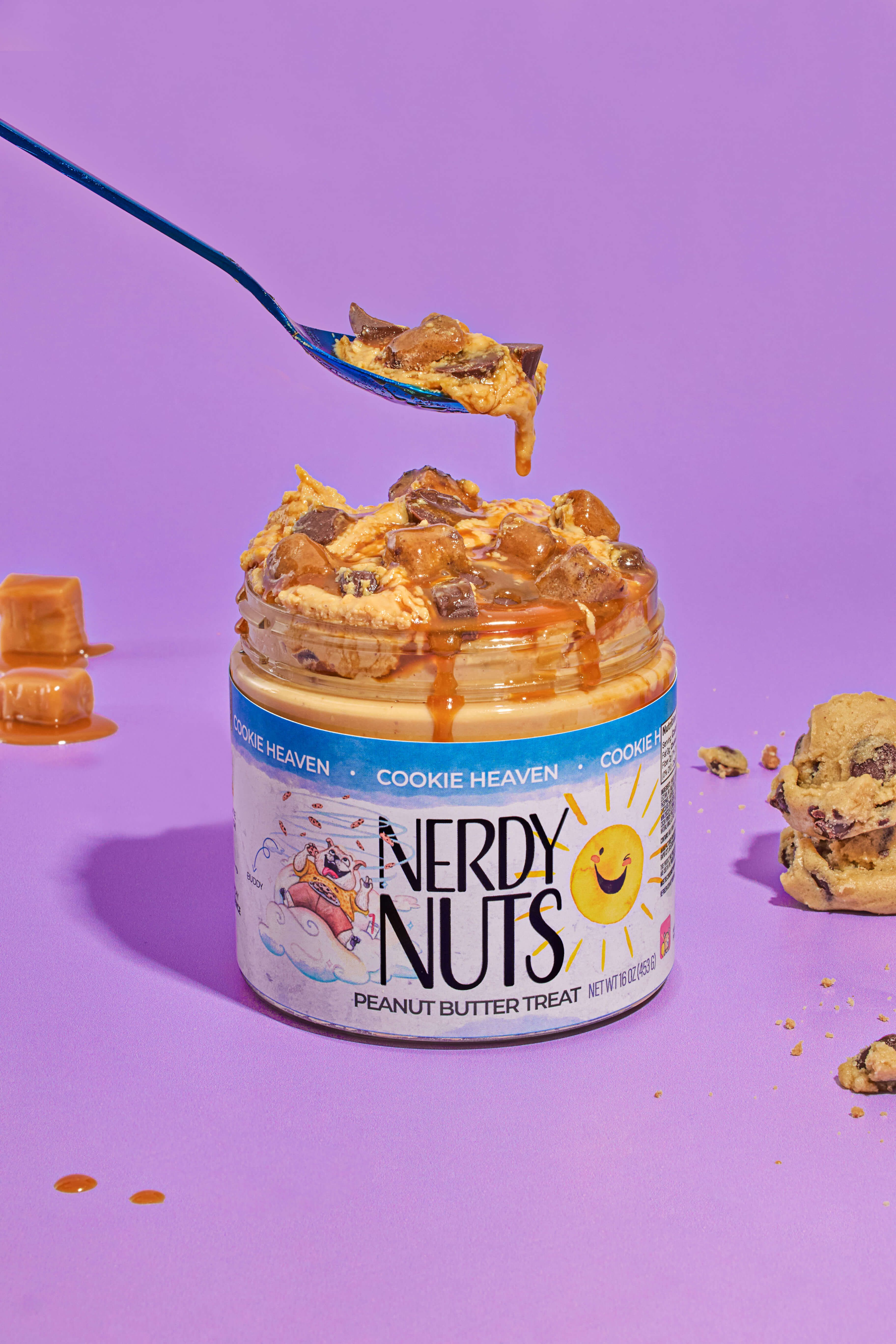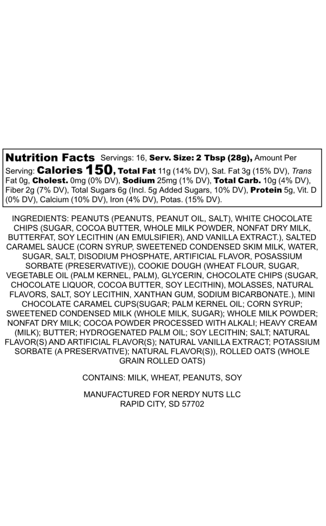 This Cookie Heaven starts with white chocolate peanut butter layered on salted caramel sauce. We top it with old fashioned oats, mini chocolate caramel cups, and cookie dough bites! Each spoon is like a bite from Heaven!