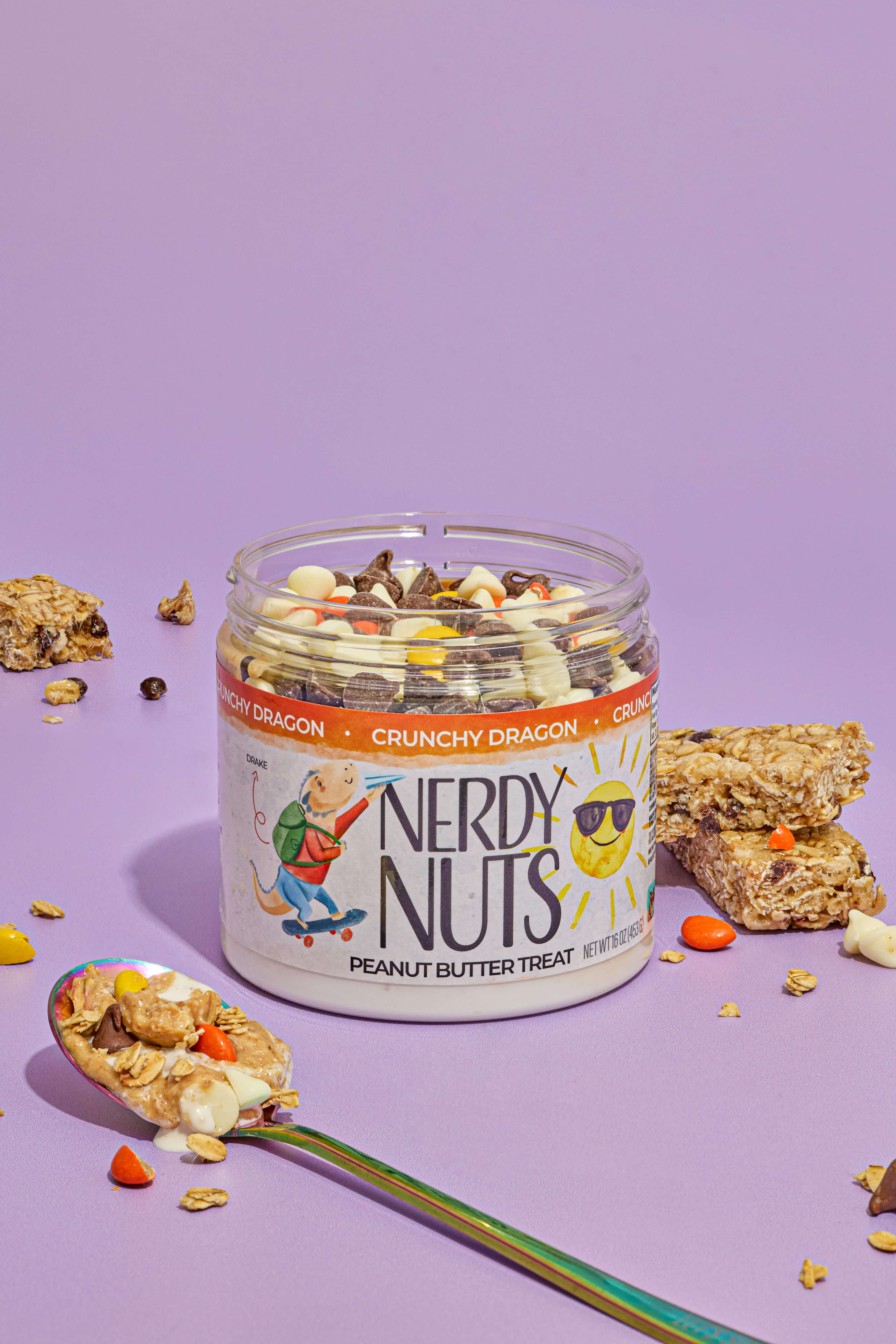 Sweet white chocolate peanut butter is layered on honey mallow creme, topped with crunchy honey granola, PB candy, white chocolate chips and milk chocolate chips!