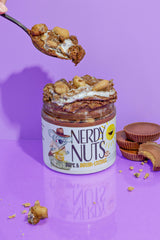 Sweet dark chocolate peanut butter is layered on cheesecake mallow creme, cookie dough bites, and dark chocolate mini buckeye candies! Now that's a tall jar of peanut butter we're reaching for!