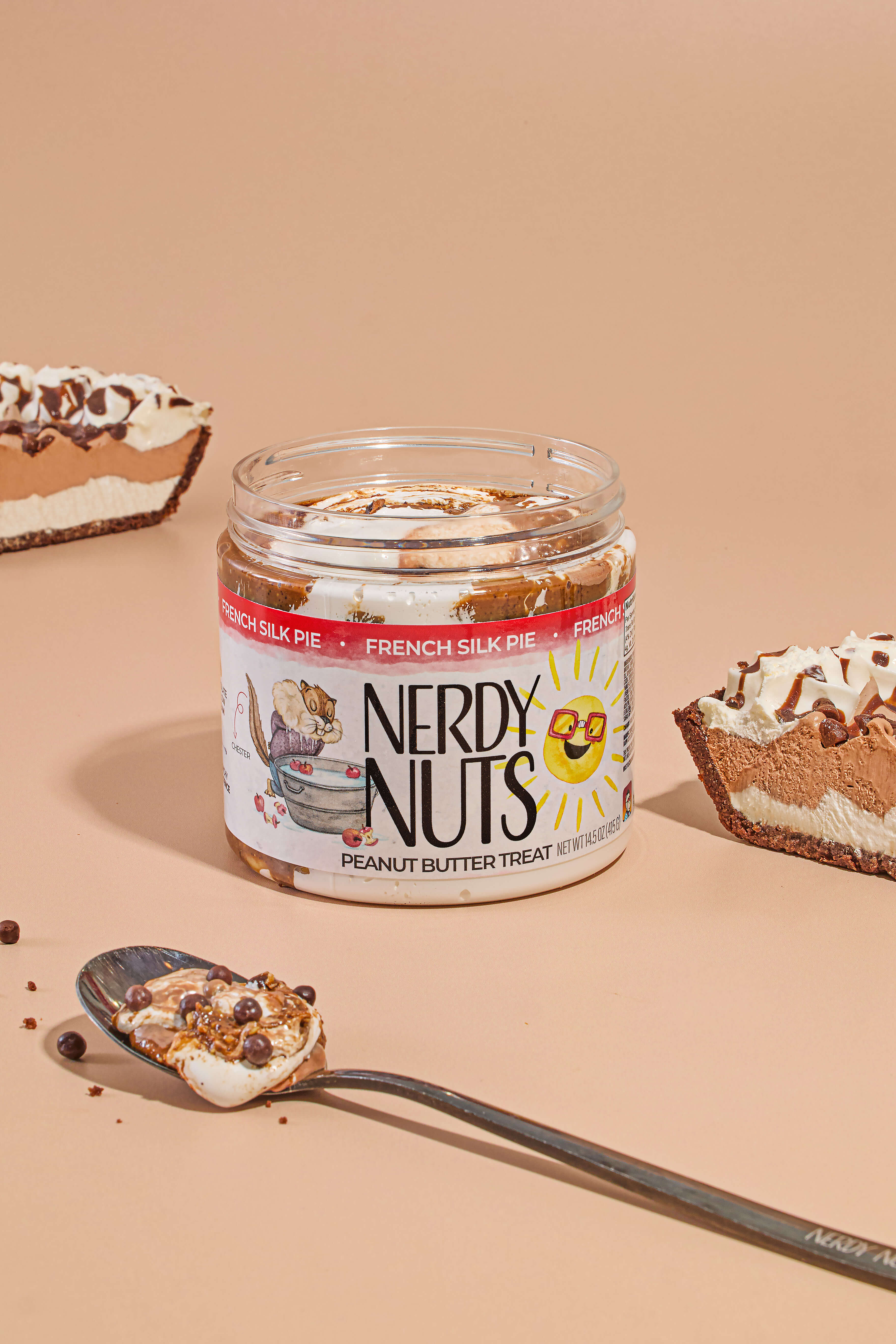 Milk chocolate peanut butter is layered on fluff and a "crust" of pie chips, topped with a smooth chocolate mallow creme and chocolate crispearls! This French Silk Pie Peanut Butter Treat is *chefs kiss*