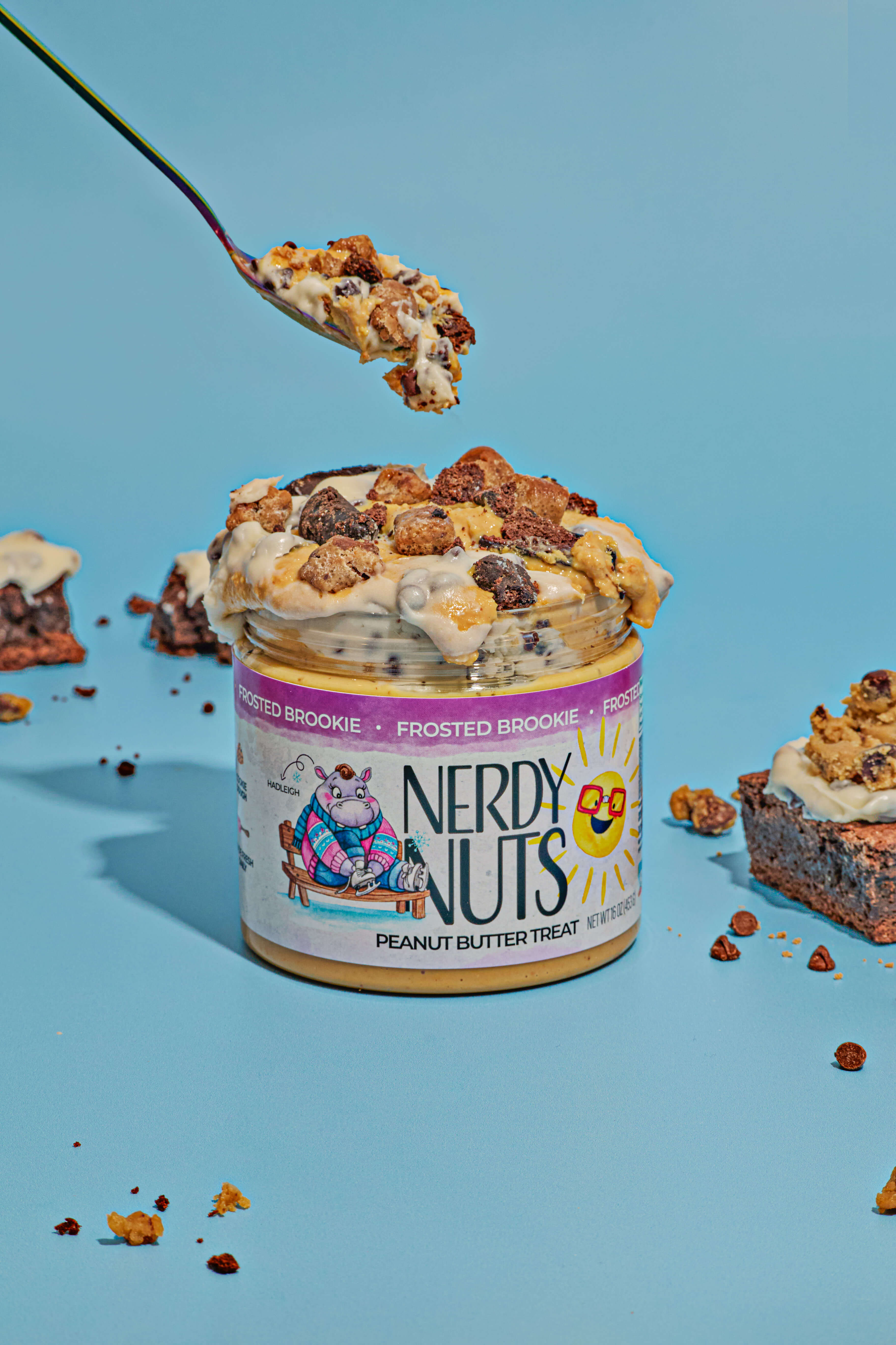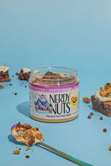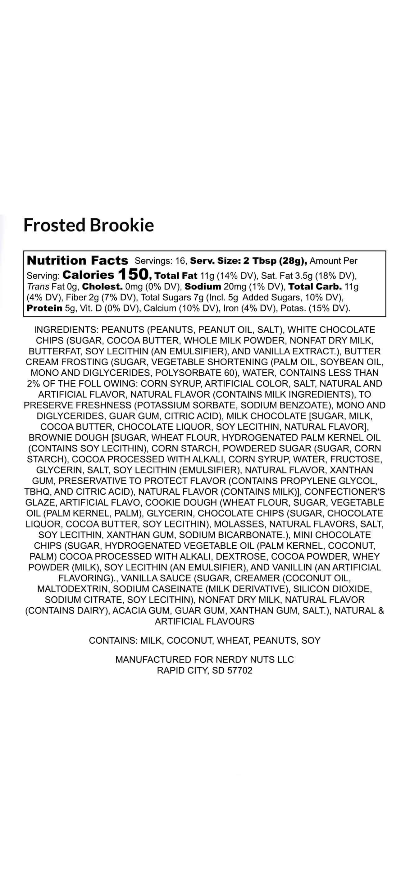 White chocolate peanut butter packed with chocolate covered brownie chunks, cookie dough, & chocolate chip cookie dough frosting!
