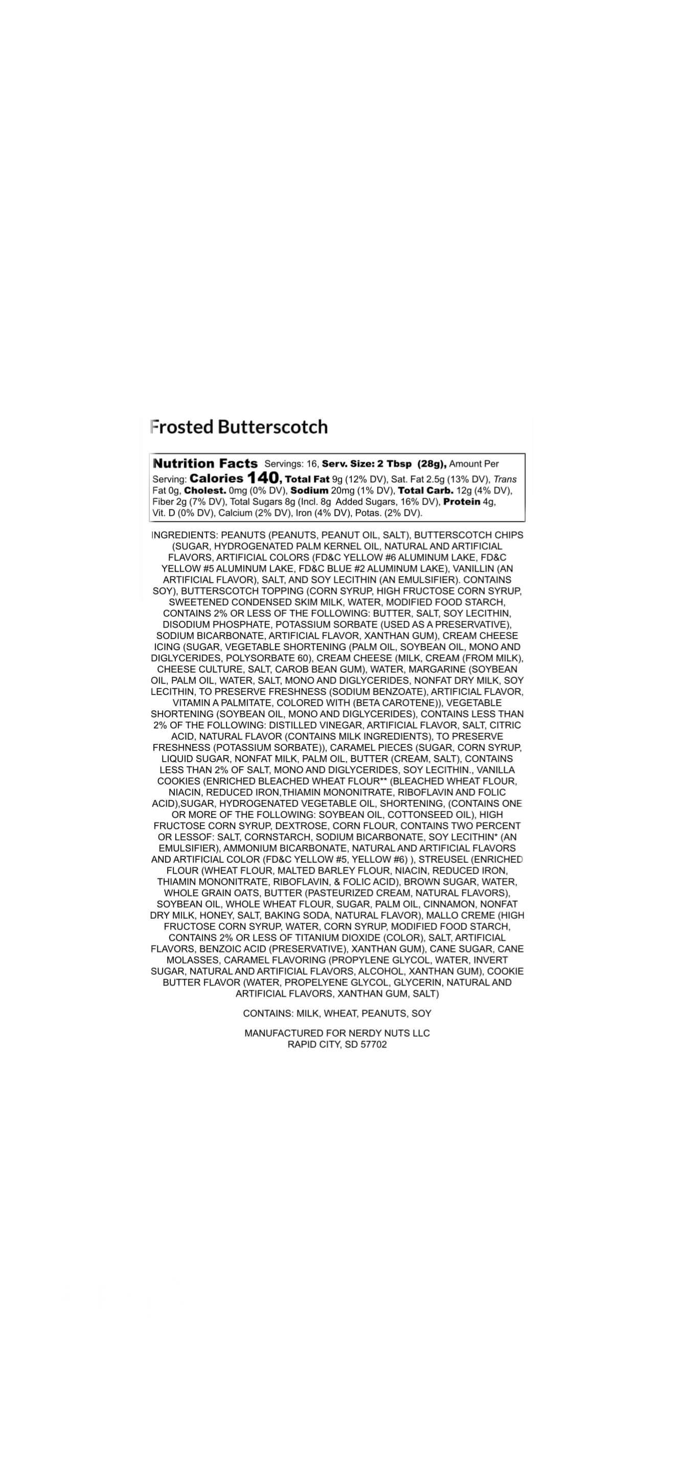 Warm brown sugar butterscotch peanut butter is layered on cookie butter butterscotch topping, topped with salted caramel cream cheese mallow frosting, caramel bits, vanilla cookies & cream, and cinnamon streusel!