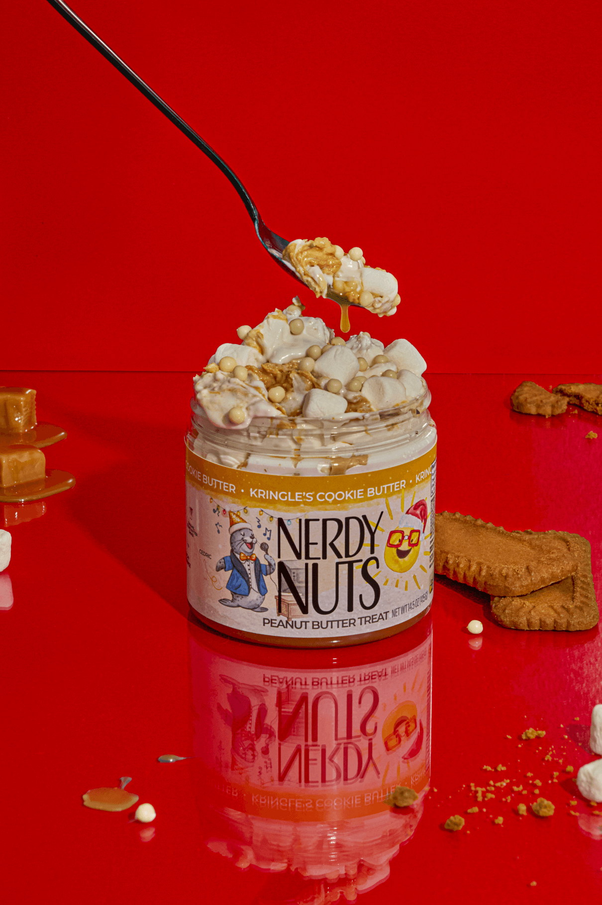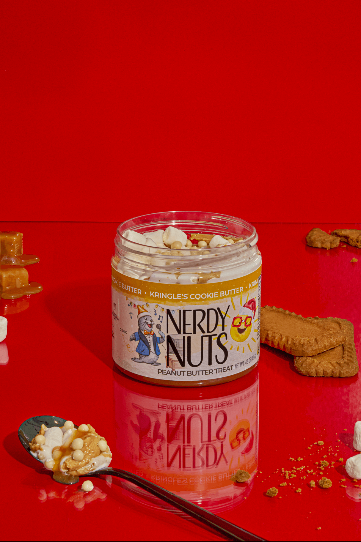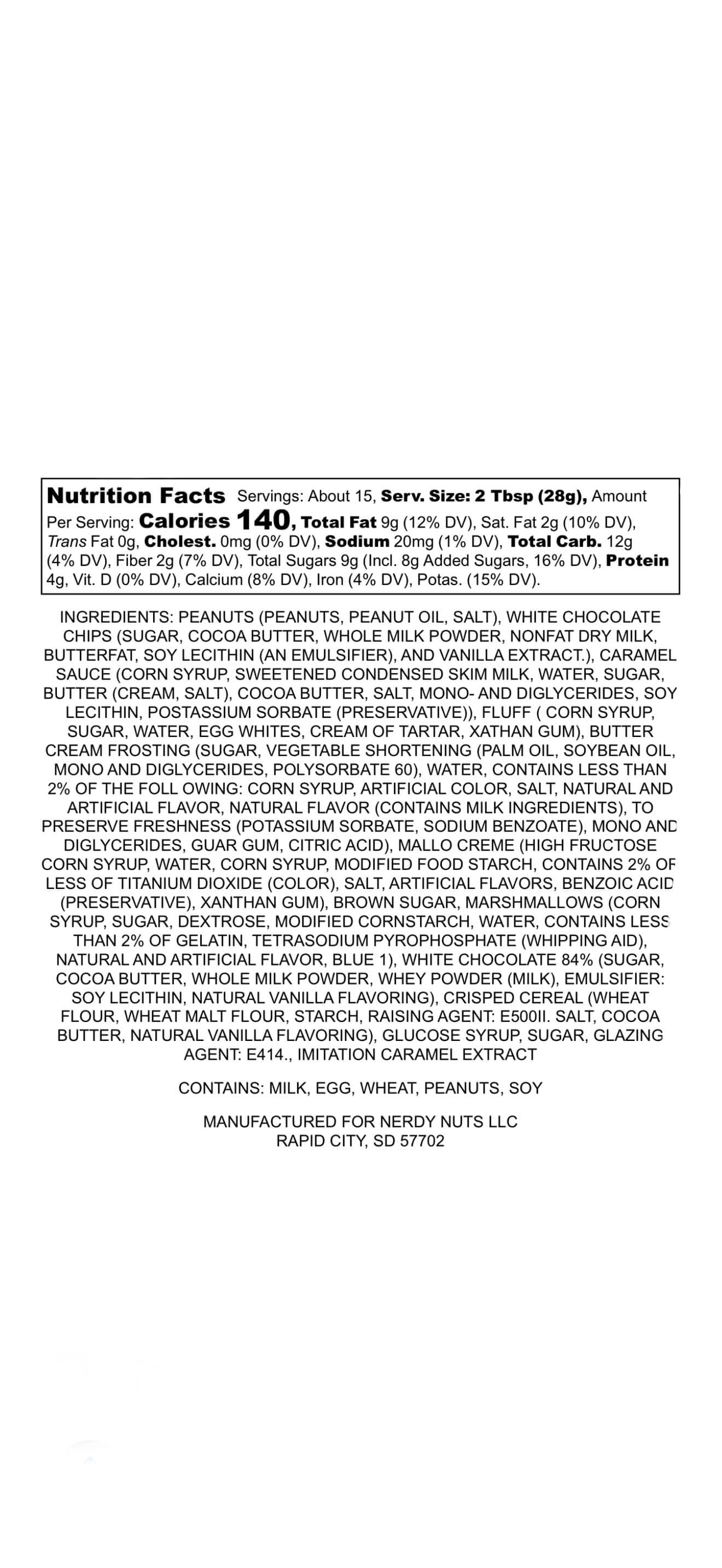 Brown sugar white chocolate peanut butter is layered on fluff and caramel cookie butter sauce, topped with fluffy mini marshmallows, white crispearls, & brown butter mallow frosting!