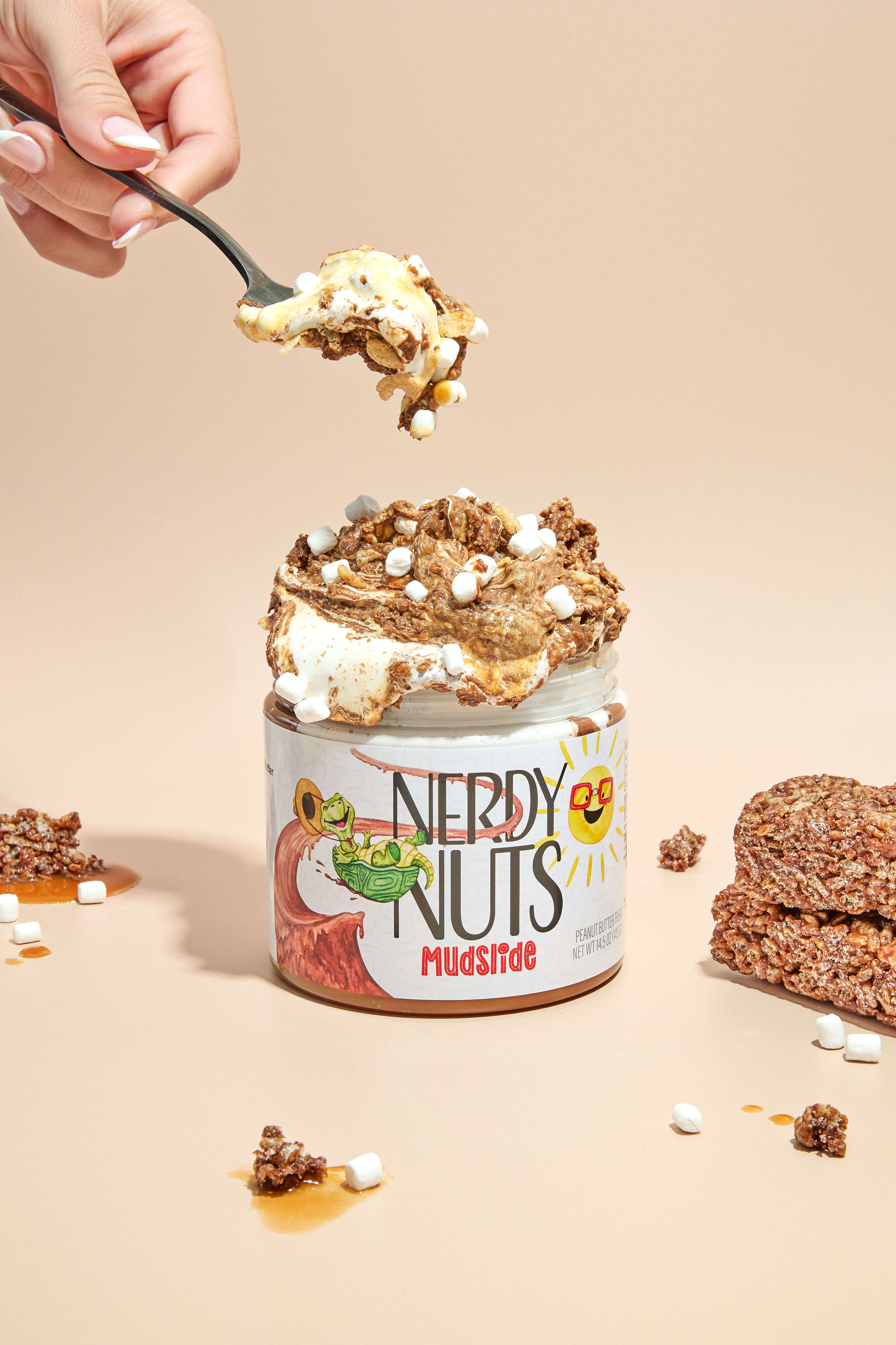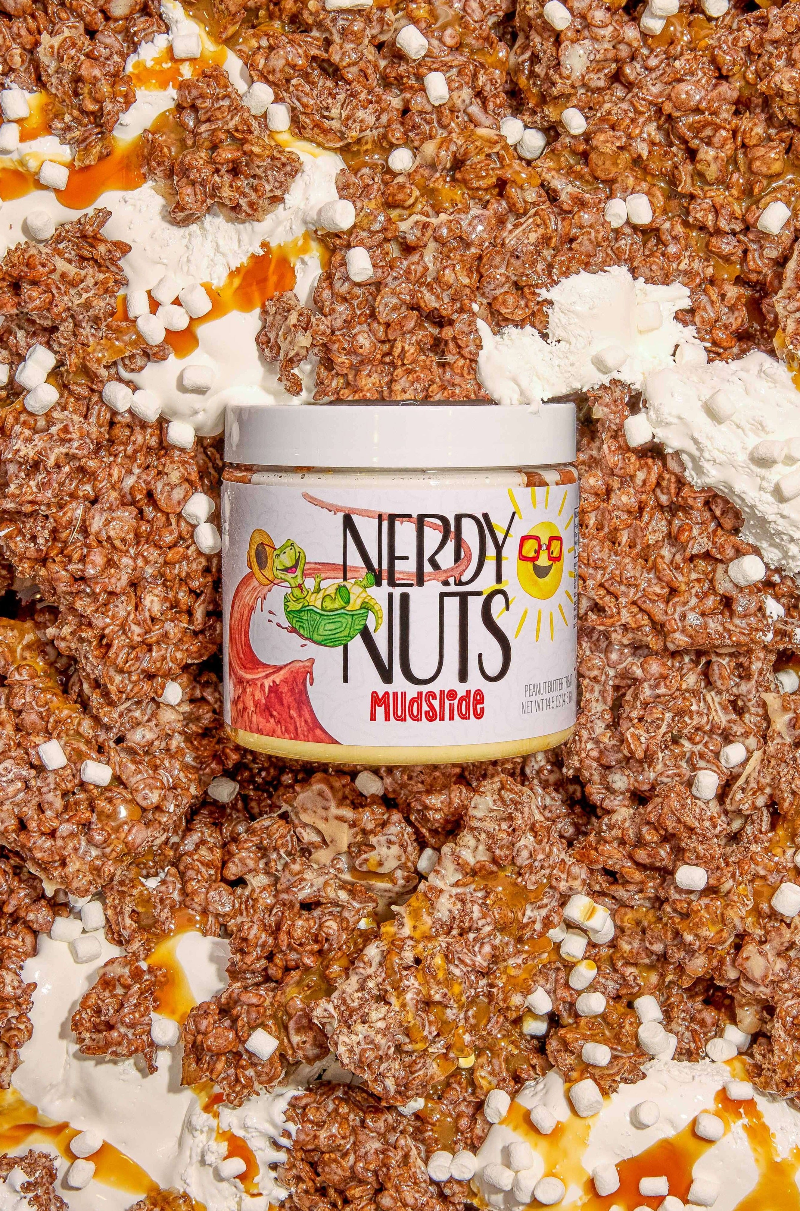 Mudslide starts with dark chocolate peanut butter layered on marshmallow fluff and caramel sauce. We top it with crispy rice cereal and dehydrated mallow bits! A chocolate twist on one of our most popular flavors!