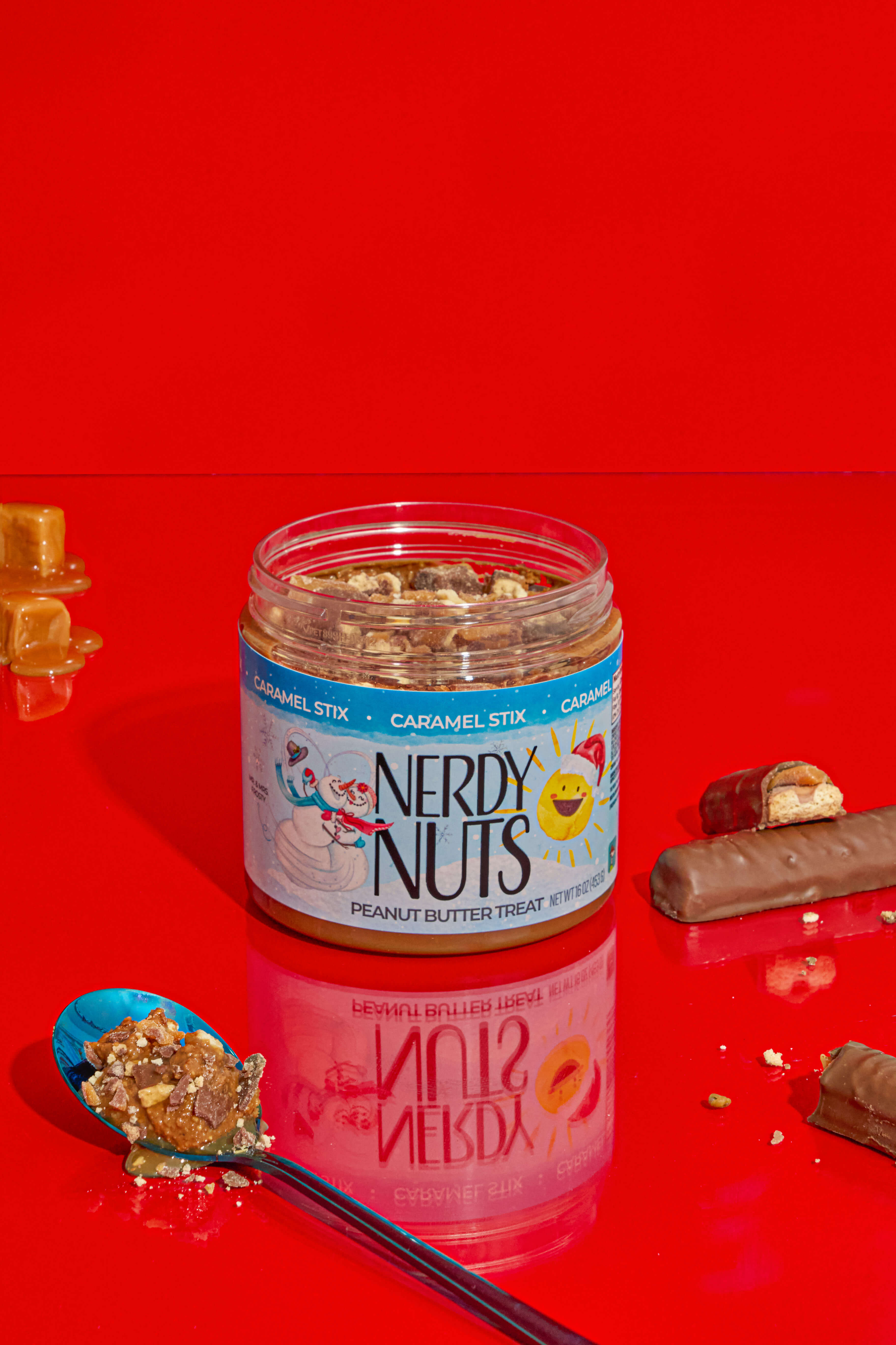 Introducing the newest addition to Nerdy Nuts candy bar line! Smooth and sweet milk chocolate base, swirls of caramel and chopped chocolate caramel cookie candies make this jar a perfect dessert.