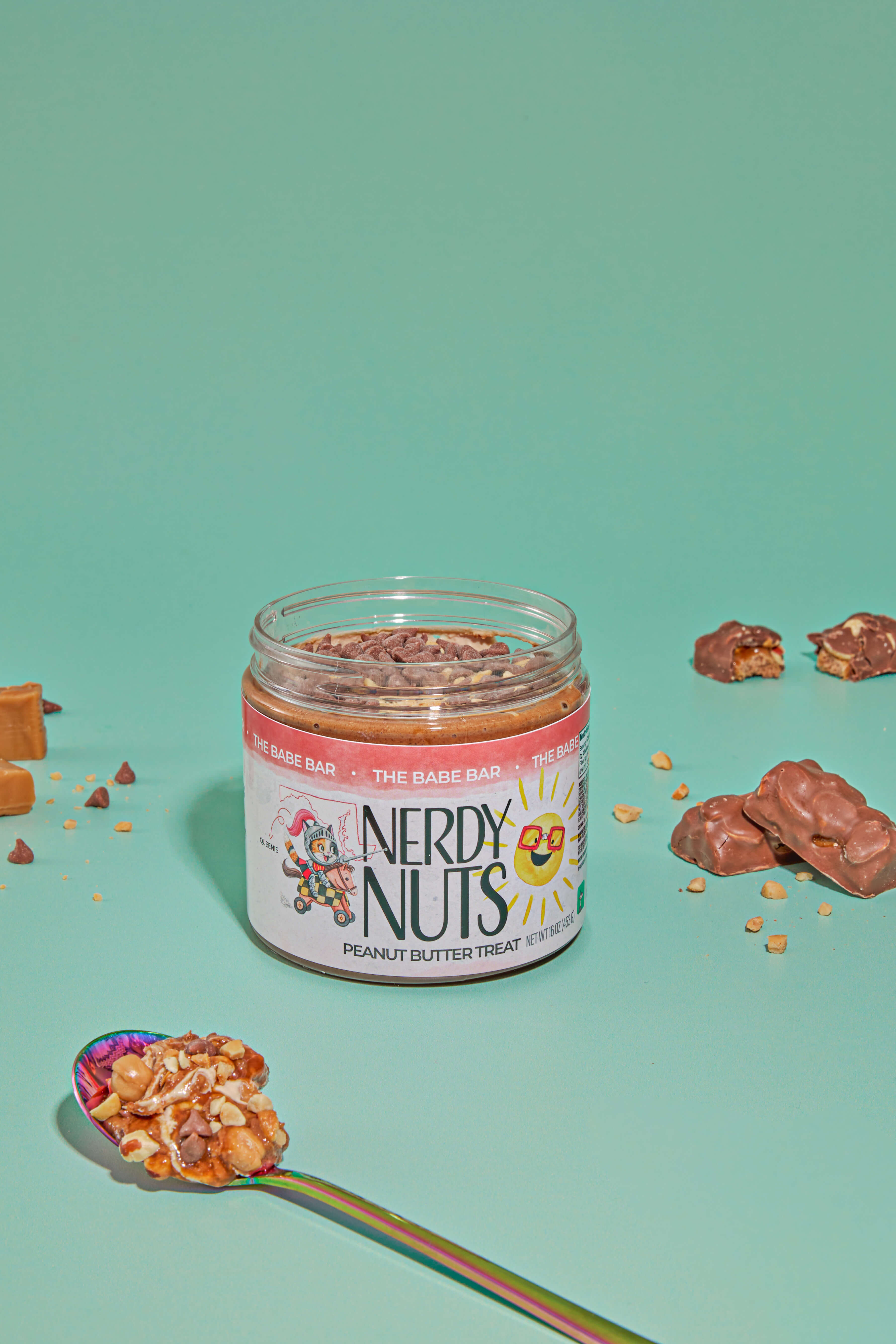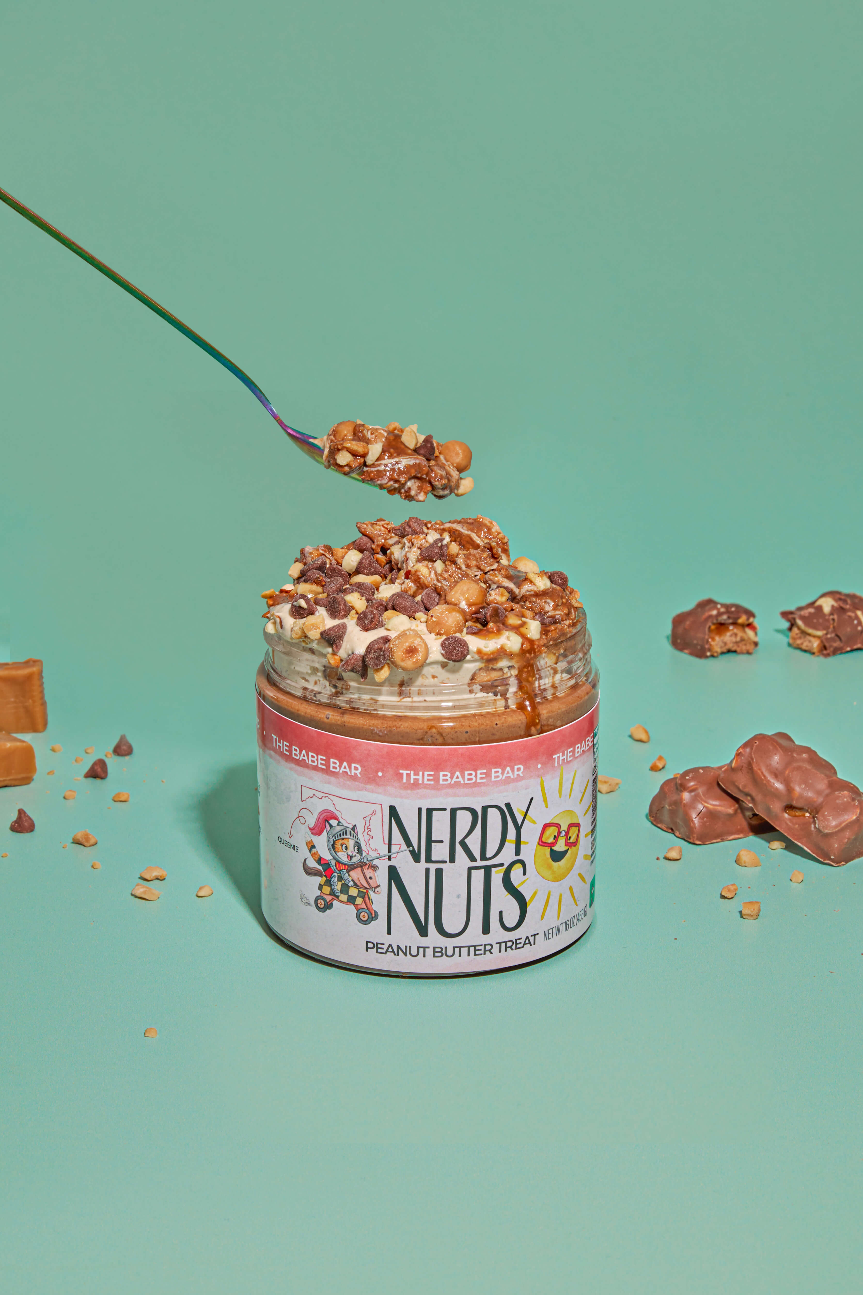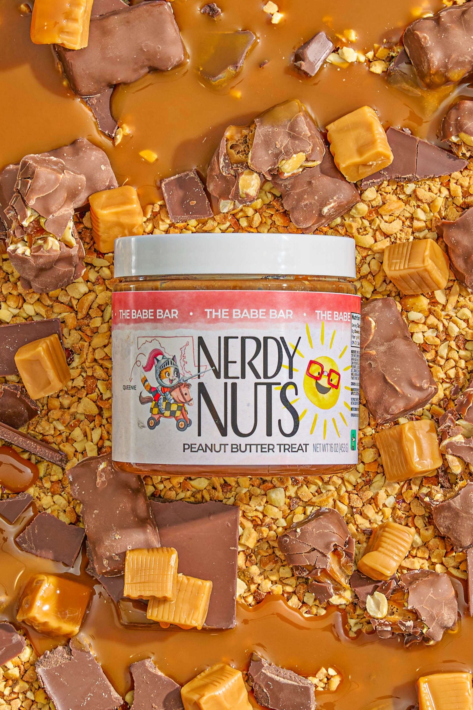 Sweet milk chocolate peanut butter is layered on caramel topping, topped with nougat cream, chopped peanuts, and caramel bits!