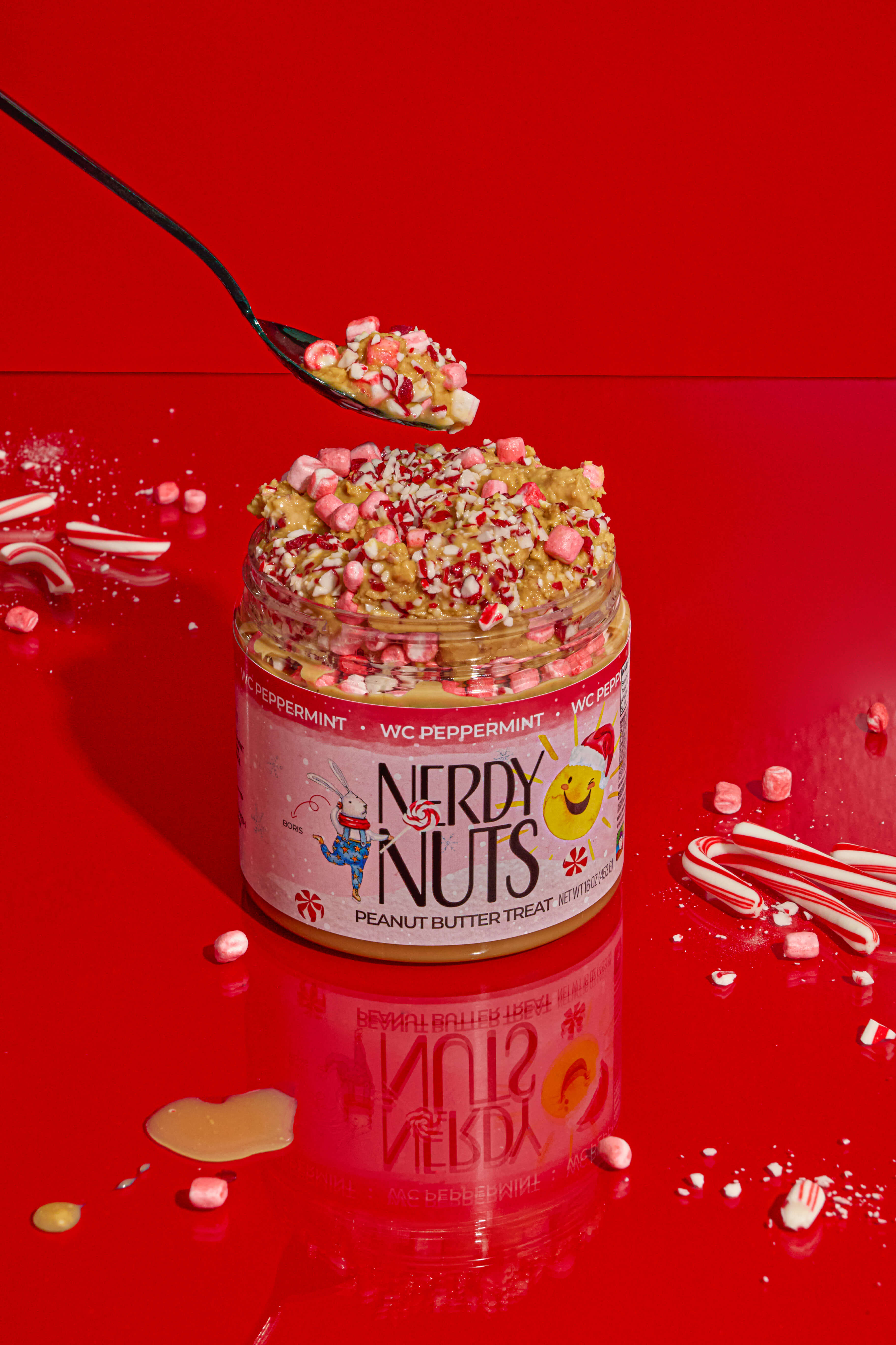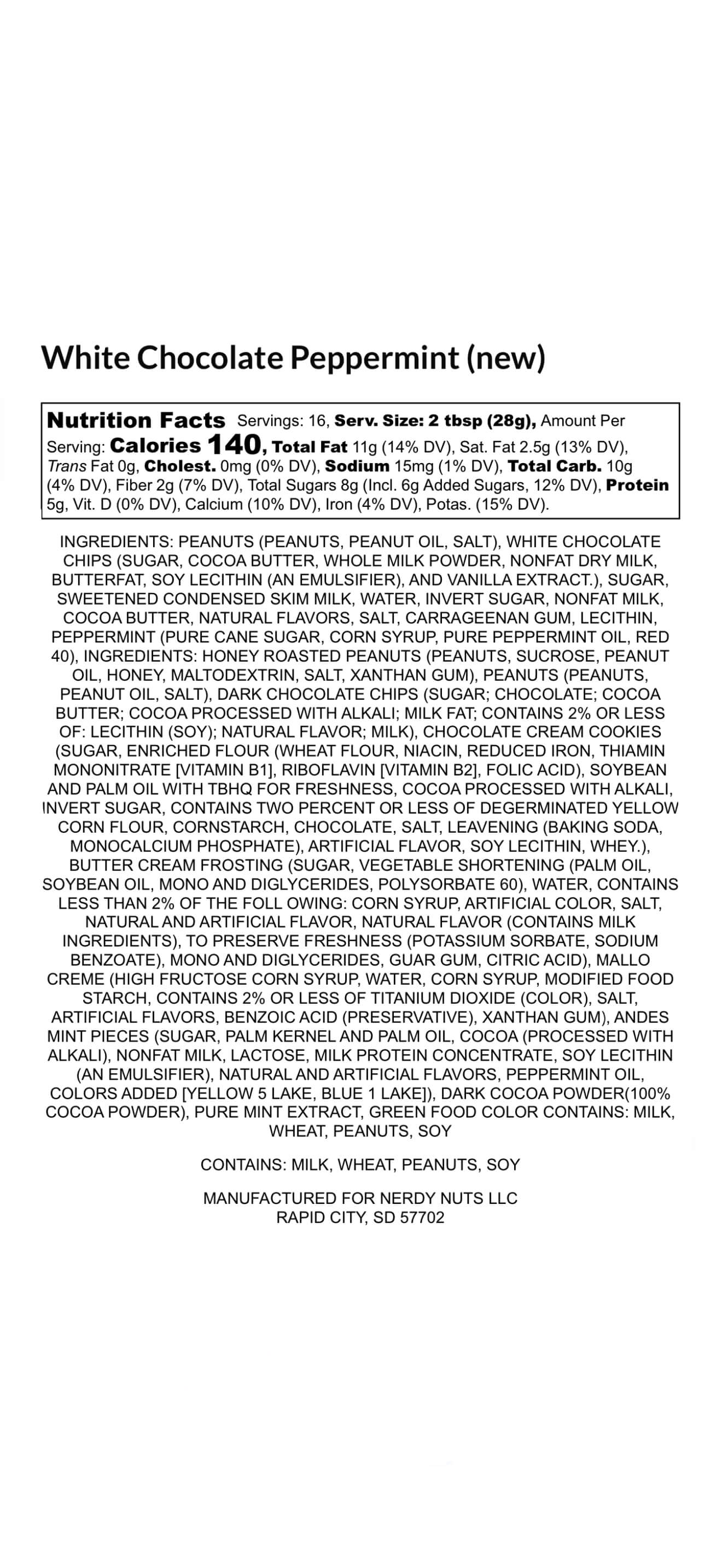 White chocolate peanut is layered on peppermint bark sauce & swirled with small slivers of peppermint candies & peppermint dehydrated mallow bits. This will make all your holiday dreams come true. Think about your favorite holiday fudge, in peanut butter form. Yes, it's literally that GOOD!