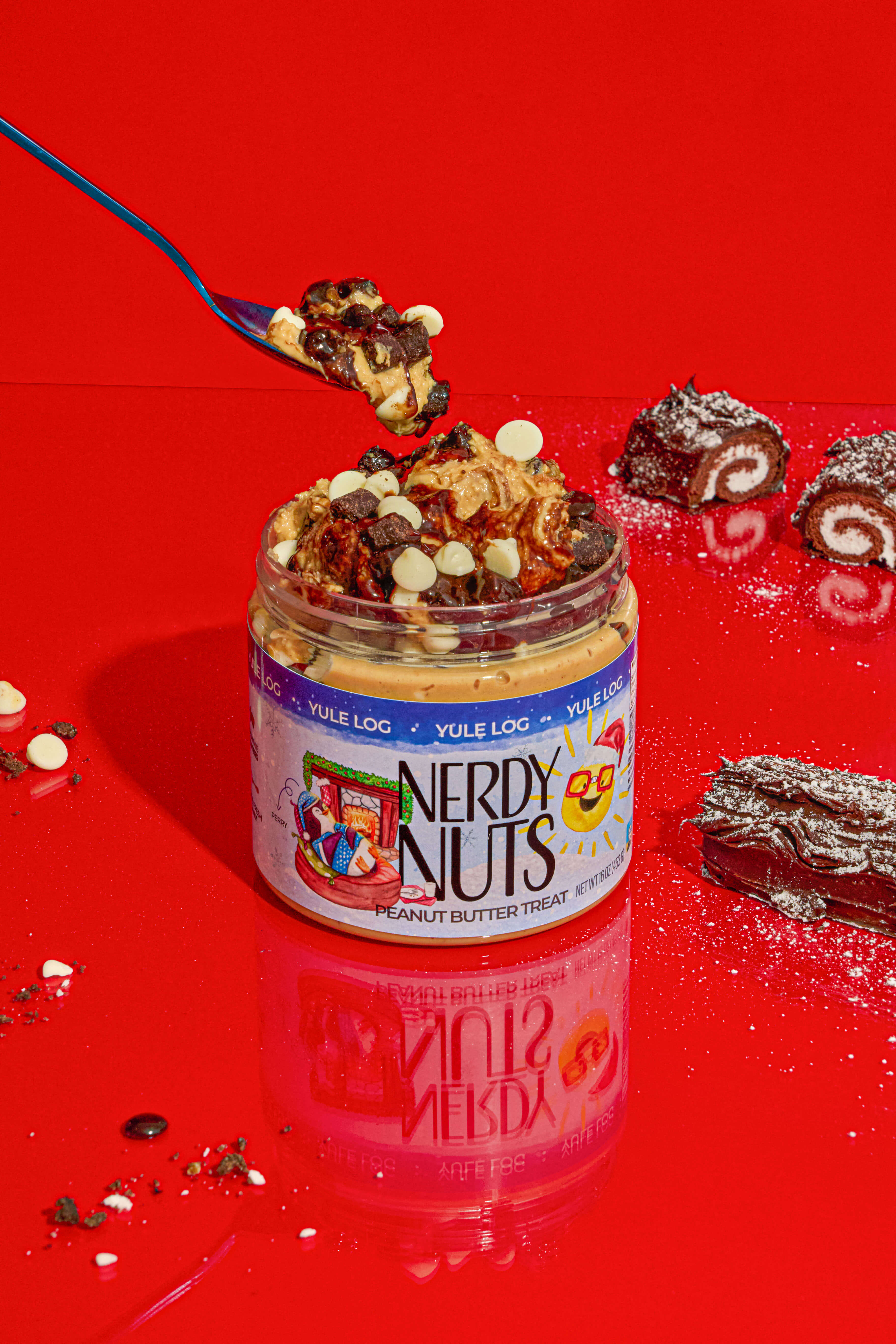 Our take on a classic holiday dessert! Yule Log is the perfect blend of sweet white chocolate peanut butter and Ghirardelli chocolate sauce topped with fudge center brownies and white chocolate chips. It's dangerously addicting and only around for the holidays. Makes the perfect holiday treat to be eaten with a spoon.